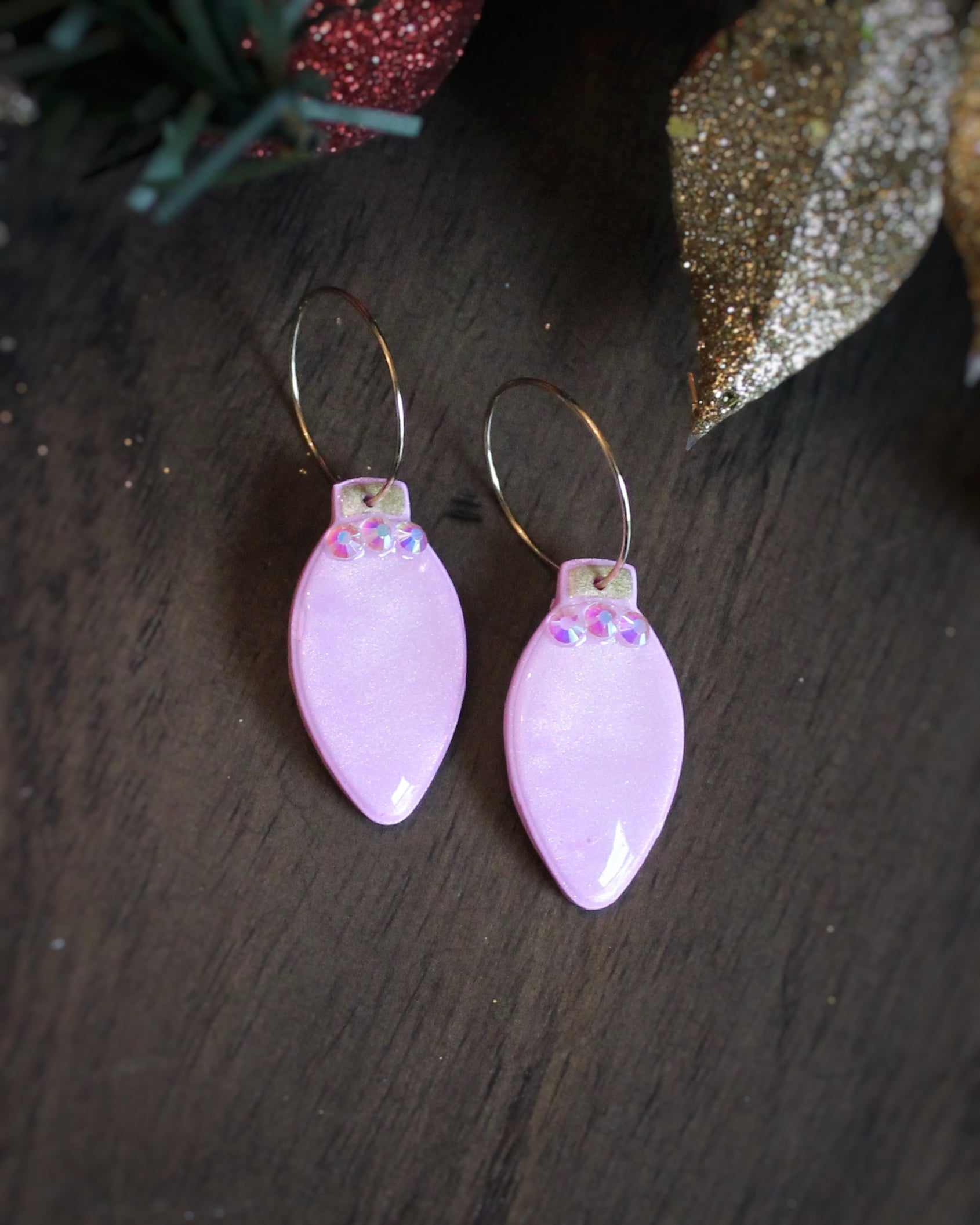 It’s a girly pop Christmas over here with these glitzy chrome light hoops! Available in pink or mint green and in gold or silver. They have a drop of about 2 inches. The pictures do them absolutely no justice, so make sure to scroll over to the videos of them!
